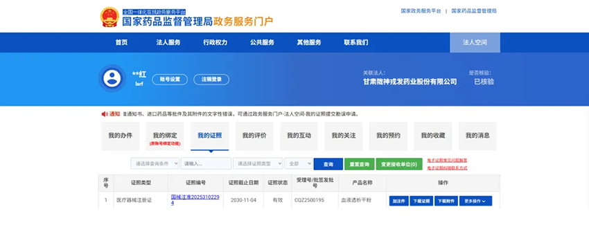 2025年11月5日,甘肅隴神戎發(fā)藥業(yè)股份有限公司申請(qǐng)注冊(cè)的第三類(lèi)醫(yī)療器械“血液透析干粉”正式通過(guò)國(guó)家藥監(jiān)局醫(yī)療器械技術(shù)審評(píng)中心評(píng)審,并同步收到國(guó)家藥監(jiān)局下發(fā)的《中華人民共和國(guó)醫(yī)療器械注冊(cè)證》,證書(shū)編號(hào)為:國(guó)械注準(zhǔn)20253102294,證書(shū)有效期為2025年11月5日-2030年11月4日。