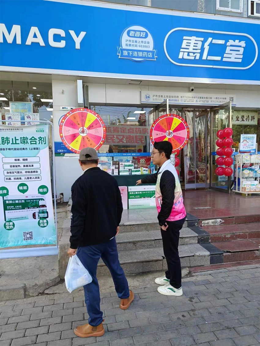 活動期間,學(xué)術(shù)部及三元醫(yī)藥OTC部的各位同事分工協(xié)作,在各藥房門口放置藥品展示臺,來往行人顧客紛紛停下腳步,表示想轉(zhuǎn)一轉(zhuǎn)我們的愛心“大轉(zhuǎn)盤”,參加小游戲,學(xué)習(xí)中醫(yī)藥小知識。