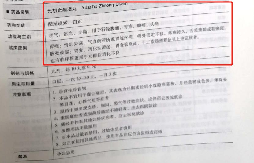 《中成藥臨床應(yīng)用指南-消化疾病分冊》元胡止痛滴丸收載內(nèi)容