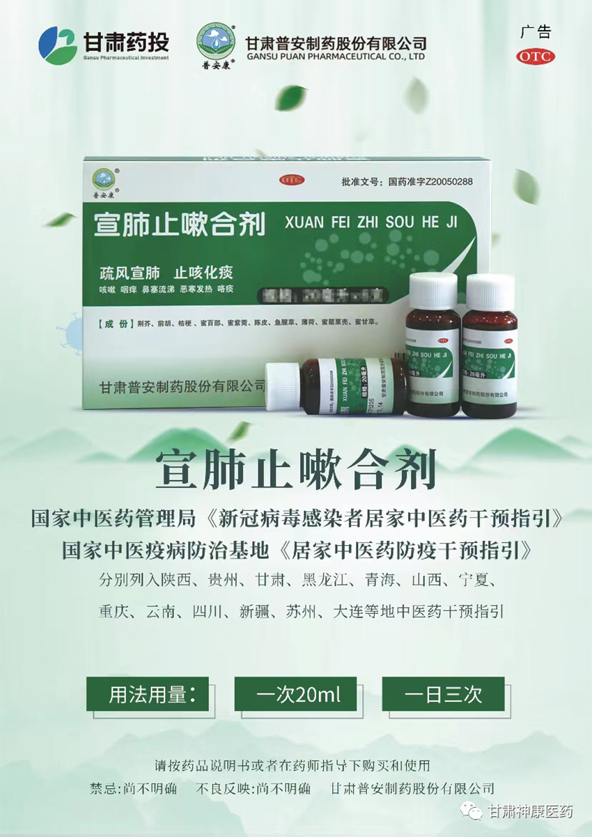 國家中醫(yī)藥管理局、國家中醫(yī)疫病防治基地等先后發(fā)布居家中醫(yī)藥干預(yù)指引、專家共識。全國各?。ㄊ校┫群蟀l(fā)布“新冠感染”居家治療用藥指南,甘肅藥業(yè)集團宣肺止嗽合劑獲多方權(quán)威機構(gòu)推薦。多地政府機構(gòu)、醫(yī)療衛(wèi)生機構(gòu)紛紛緊急訂購宣肺止嗽合劑,用以保障當(dāng)?shù)蒯t(yī)療衛(wèi)生機構(gòu)分級診療用藥及政府藥品備用。甘肅藥業(yè)集團全力組織藥品生產(chǎn)企業(yè)普安制藥開足馬力生產(chǎn),盡最大努力保障群眾用藥需求。