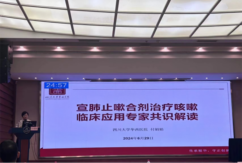 四川省中醫(yī)藥學(xué)會肺系病專業(yè)委員會副主任委員、四川大學(xué)華西醫(yī)院付娟娟教授介紹,宣肺止嗽合劑源自《醫(yī)學(xué)心悟》中經(jīng)典名方“止嗽散”,歷經(jīng)數(shù)百年的驗證,由多位名老中醫(yī)在原方基礎(chǔ)上加減化裁而成。付娟娟對《宣肺止嗽合劑治療咳嗽臨床應(yīng)用專家共識》進行了專題解讀,從宣肺止嗽合劑的安全性、有效性以及依賴性研究等方面進行系統(tǒng)詮釋,肯定了宣肺止嗽合劑治療效果。