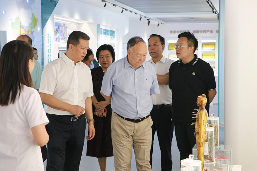 在公司展廳參觀過(guò)程中,段金廒教授一一了解了公司特色產(chǎn)品。每到一處,段金廒教授總能結(jié)合自己的研究方向,與大家交流產(chǎn)品的功能特色和處方藥材資源,并饒有興致地現(xiàn)場(chǎng)講解了公司獨(dú)家品種元胡止痛滴丸所用的“延胡索”藥材的產(chǎn)地演變歷史及資源現(xiàn)狀。段金廒教授強(qiáng)調(diào),企業(yè)要注重藥材種子種苗培育和產(chǎn)地管理,從源頭上確保藥品質(zhì)量;要圍繞重大疾病和慢性病,結(jié)合在研的醫(yī)療器械,配套研制中藥類相關(guān)新產(chǎn)品,逐步形成產(chǎn)業(yè)優(yōu)勢(shì)。