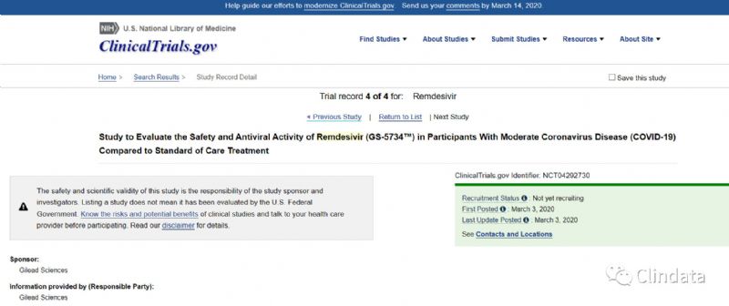 瑞德西韋是受到廣泛關(guān)注的抗病毒在研療法,它目前在6項臨床試驗中接受檢驗,治療不同類型的COVID-19患者。其中,在中國進行的兩項臨床試驗有望在4月份獲得結(jié)果。