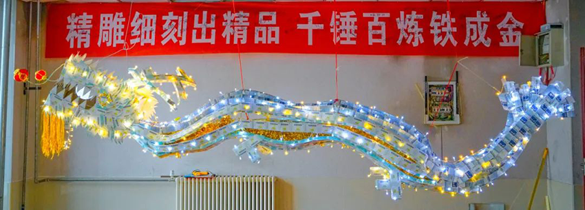 自制彩燈有員工個人創(chuàng)作,也有團隊合作完成;有利用廢舊藥盒制作的祥龍和傳統(tǒng)燈籠,也有利用一次筷子完成的“萬家燈火”,新穎獨特、各有特色?;顒庸彩盏絺€人或團隊制做的彩燈42盞。最終,由安全環(huán)保部和工會辦公室合作完成的“宣元龍”取得了本次比賽的一等獎。