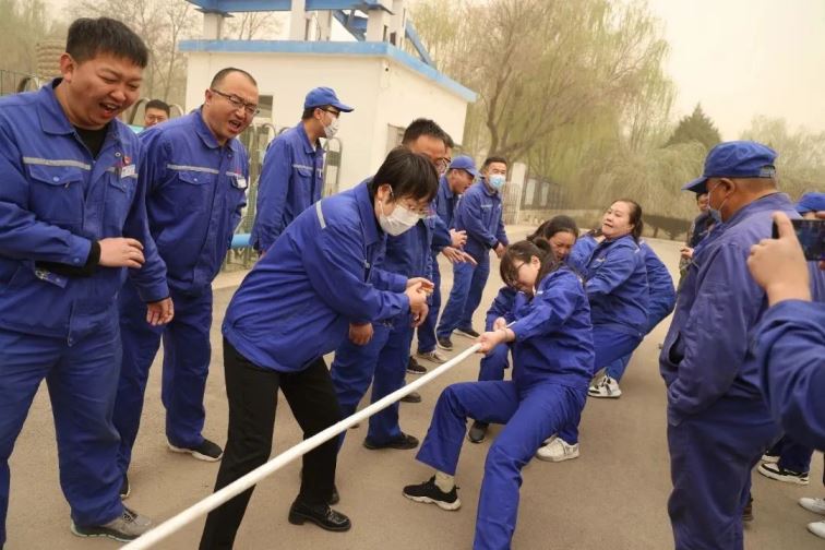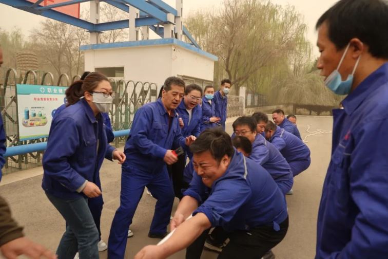 開(kāi)幕式結(jié)束后,普安、普華拔河友誼賽火熱開(kāi)賽??v使今天黃沙漫漫,陰陰沉沉,但雙方選手的熱情沒(méi)有受到絲毫影響。賽場(chǎng)上參賽隊(duì)員奮勇拼搏,賽場(chǎng)邊圍觀觀眾搖旗吶喊,氣氛好不熱烈!