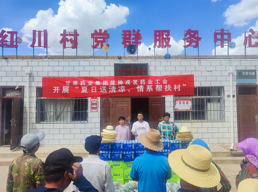 持續(xù)高溫天氣,置身室外仿佛被熱浪包圍,然而眾多公益崗人員、村兩委、社長仍堅守崗位,頂著烈日,用自己辛勤的汗水換來干凈整潔的農(nóng)村生活環(huán)境。為關(guān)心關(guān)愛一線工作人員,7月24日下午,隴神戎發(fā)藥業(yè)工會在幫扶村開展“送清涼”活動,為他們送上防暑降溫用品,向堅守在一線的他們致以敬意。