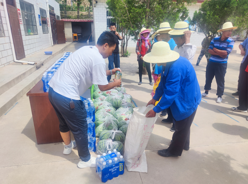 活動現(xiàn)場,隴神戎發(fā)駐村干部為幫扶村公益崗人員、村兩委、社長們送上了宣肺止嗽合劑、礦泉水、西瓜等物品,對長期頂著烈日依然上路作業(yè)、巡林護林的人員送去慰問和感謝,并叮囑大家在高溫天氣下勞動,要合理安排作業(yè)時間,隨身攜帶消暑降溫用品,及時到陰涼處休息、飲用防暑藥品。