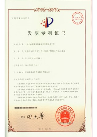 獲國家重點新產品、中國專利優(yōu)秀獎、甘肅省專利獎、甘肅省科技進步獎等省級以上科技獎勵共13項。