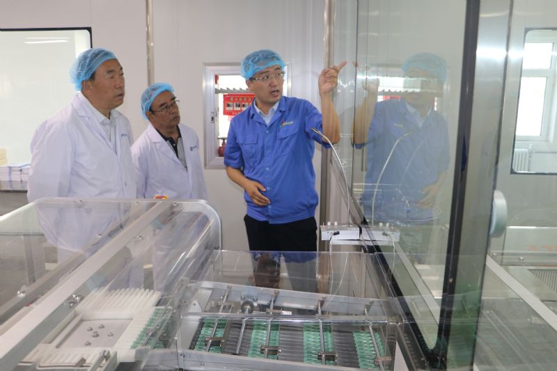 在制劑車間,錢雙喜向調(diào)研組一行講解了元胡止痛滴丸滴制、晾丸等的生產(chǎn)工藝流程,調(diào)研組一行在外包裝聯(lián)動線前觀看了元胡止痛滴丸內(nèi)包及外包裝生產(chǎn)全過程。
