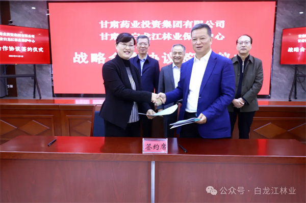 11月1日,白龍江林業(yè)保護(hù)中心與甘肅藥業(yè)投資集團(tuán)簽署戰(zhàn)略合作協(xié)議,雙方將在林下中藥材產(chǎn)業(yè)領(lǐng)域展開深度合作,共同譜寫林下中藥材產(chǎn)業(yè)發(fā)展新篇章。保護(hù)中心黨委書記、主任張宏禎,甘肅藥業(yè)集團(tuán)黨委書記、董事長周榮出席儀式并致辭。保護(hù)中心黨委常委、副主任王雅秋、馮興平、馬志強(qiáng),甘肅藥業(yè)集團(tuán)黨委副書記、總經(jīng)理竇生銘,黨委委員、副總經(jīng)理張世俊、李儼鈞及雙方相關(guān)部門負(fù)責(zé)同志參加了儀式。王雅秋、竇生銘代表雙方簽約。