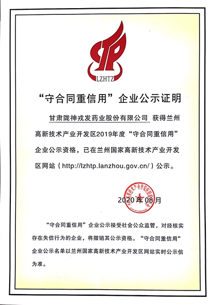 9月29日,蘭州國家高新技術(shù)開業(yè)區(qū)“信用體系建設(shè)培訓(xùn)及‘守合同重信用’企業(yè)授牌儀式”在高新區(qū)科技孵化大廈隆重舉行。隴神戎發(fā)獲評“2019年度‘守合同重信用’企業(yè)”,并在高新區(qū)官方網(wǎng)站進行信用企業(yè)實時公示。