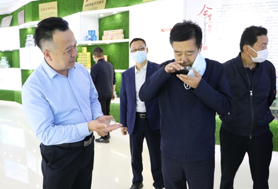 王奮彥一行在甘肅藥業(yè)集團(tuán)黨委書記、董事長魏陽的陪同下,饒有興致地參觀了公司制劑大樓的產(chǎn)品陳列廳,詳細(xì)了解了甘肅藥業(yè)集團(tuán)的組建背景、產(chǎn)業(yè)構(gòu)成,以及隴神戎發(fā)的發(fā)展歷史、科技研發(fā)、主導(dǎo)產(chǎn)品及市場銷售情況。魏陽董事長就隴神戎發(fā)主打產(chǎn)品元胡止痛滴丸的市場規(guī)模和劑型特點(diǎn)向調(diào)研組進(jìn)行了詳細(xì)介紹,并結(jié)合公司近期推出的元胡止痛滴丸婦科“痛經(jīng)”單病種全新包裝,以及以甘肅道地藥材黃芪和當(dāng)歸為主要原料研制而成的黃芪當(dāng)歸膠囊將逐步拓寬線上銷售等一系列創(chuàng)新舉措,與調(diào)研組進(jìn)行了深入交流。