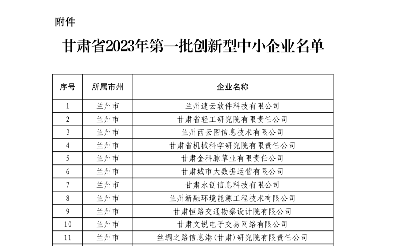 近日,甘肅省工業(yè)和信息化廳發(fā)布了關(guān)于2023年度第一批創(chuàng)新型中小企業(yè)名單,隴神戎發(fā)成功入選該名單。