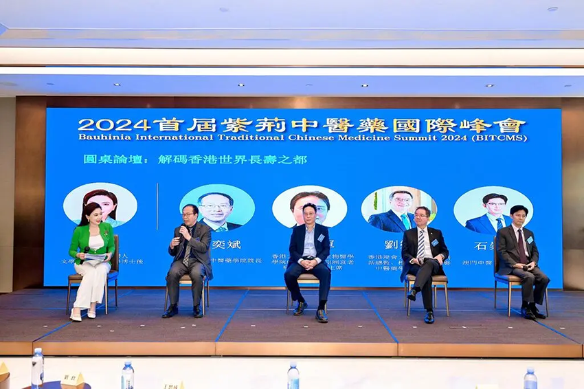 其后,香港大學(xué)中醫(yī)藥學(xué)院院長(zhǎng)馮奕斌,香港大學(xué)醫(yī)學(xué)院生物醫(yī)學(xué)學(xué)院終身教授、亞洲衰老研究學(xué)會(huì)創(chuàng)會(huì)主席周中軍,香港浸會(huì)大學(xué)暫任首席創(chuàng)新總監(jiān)、校長(zhǎng)資深顧問(wèn)暨中醫(yī)藥學(xué)院榮譽(yù)教授劉樂(lè)庭,澳門(mén)中醫(yī)藥學(xué)會(huì)會(huì)長(zhǎng)石崇榮圍繞“解碼香港世界長(zhǎng)壽之都”主題展開(kāi)探討。