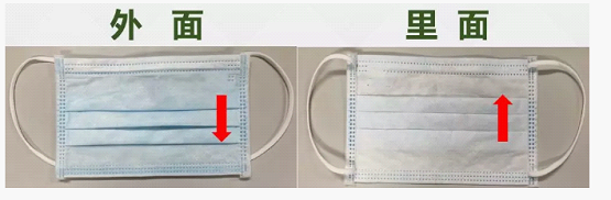 從口罩皺褶來看,皺褶處往下就是外面,皺褶處往上的就是里面 。