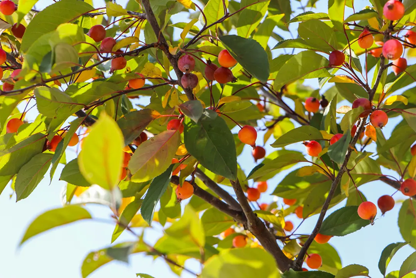 廠區(qū)角落,金黃的銀杏果綴滿枝頭,紅海棠與黃海棠交錯生長,果實如瑪瑙般綴滿枝椏,為秋日的廠區(qū)添一抹活潑的亮色。這些果實不張揚,卻以最本真的姿態(tài),詮釋著“豐收”的另一種模樣——不必碩果累累,只要自然生長,便是對歲月最好的回應。